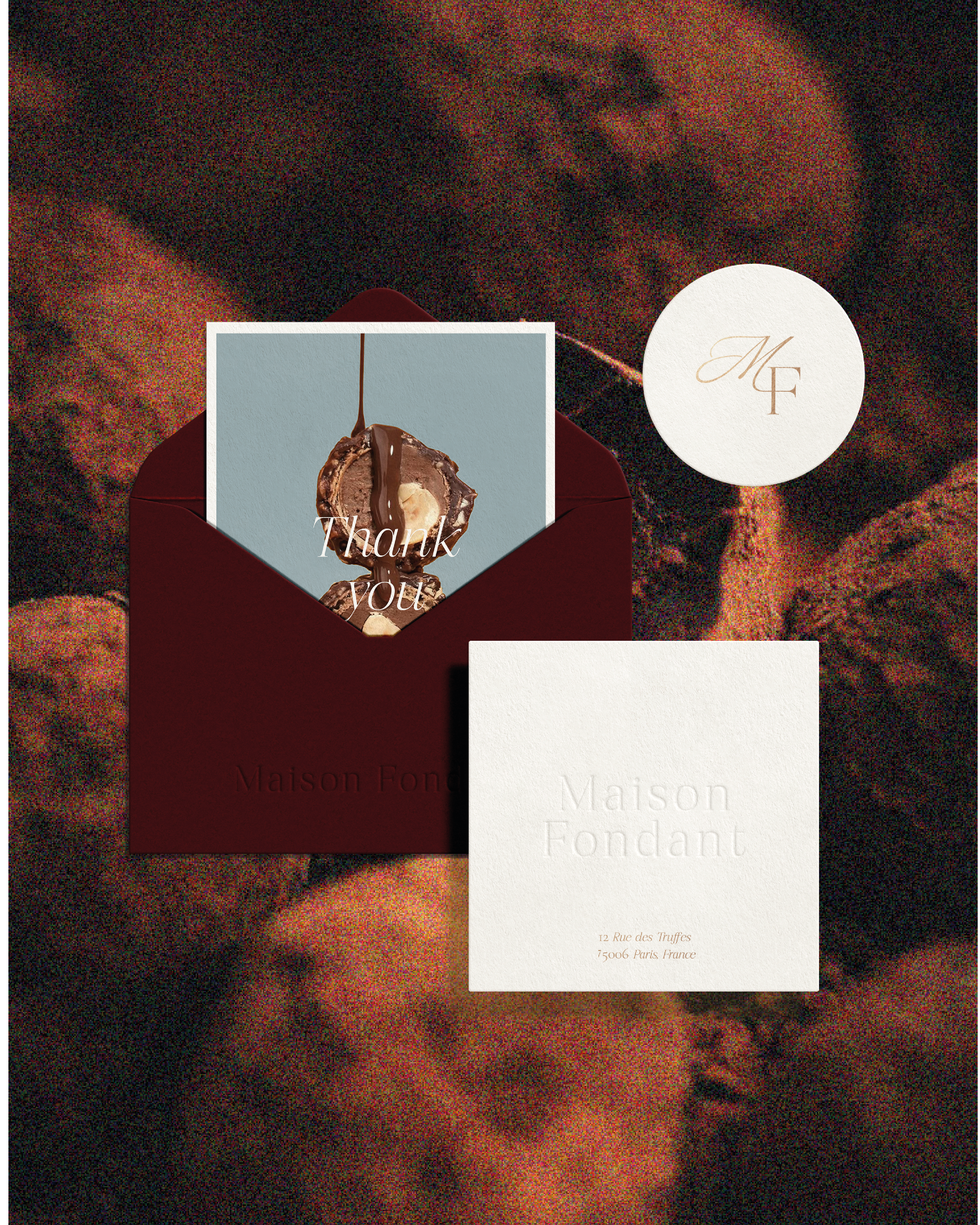 Pour Maison Fondant, j’ai imaginé une identité visuelle qui traduit le raffinement de leurs truffes.