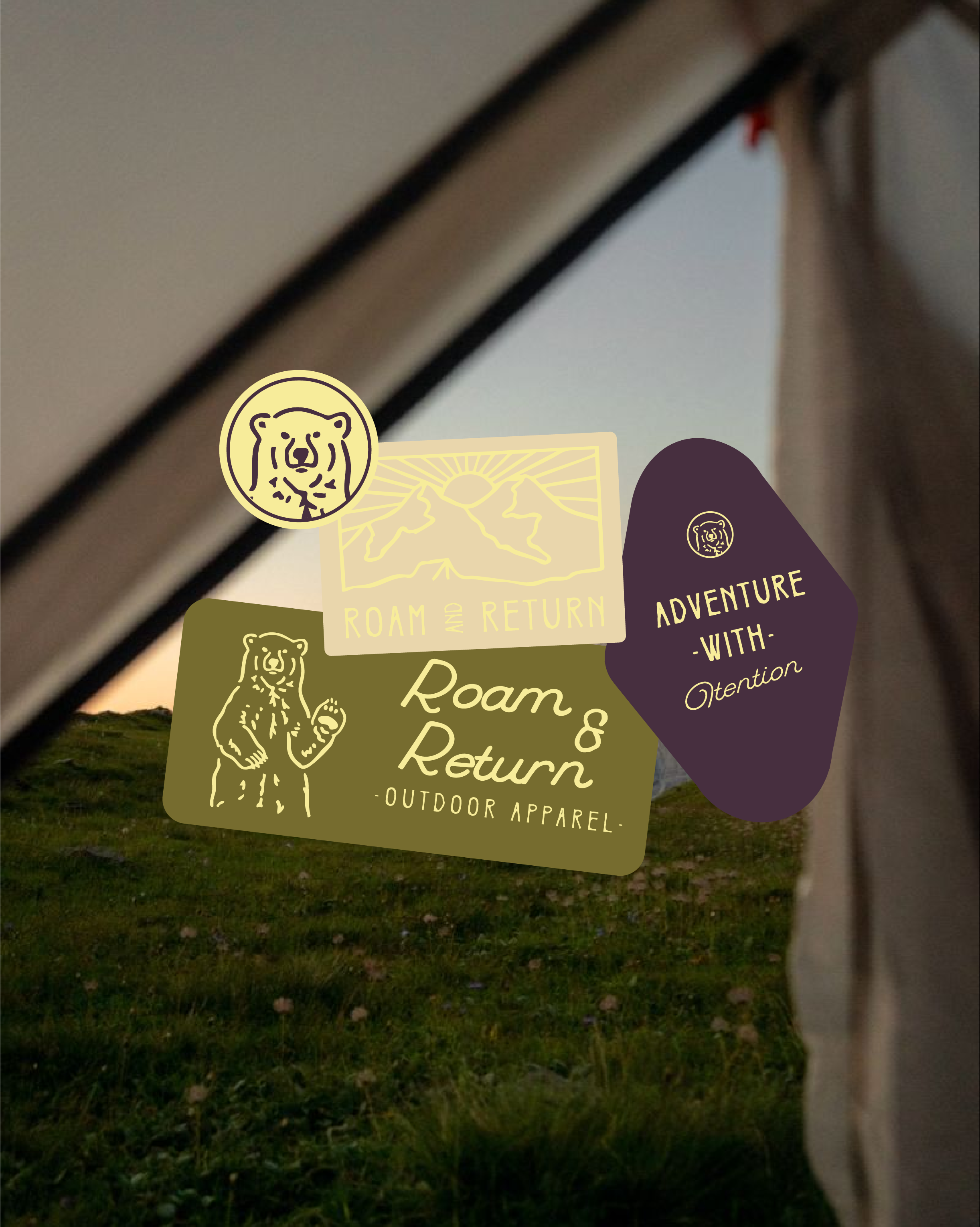 Pensée comme une marque de vêtements et d’équipements outdoor, Roam & Return s’inspire d’univers comme Patagonia, Fjällräven ou Parks Project. L’objectif : créer une identité à la fois intemporelle, minimaliste et pleine de sens, qui célèbre la nature et rappelle l’importance de la préserver.